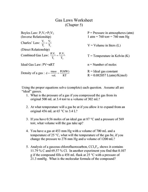 Download Gas Law Calculations Worksheets Answers Doc